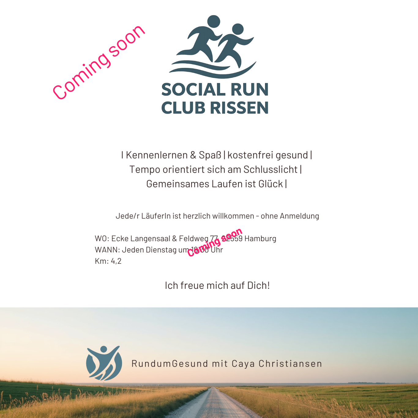 Let´s connect beim Social Run Club Rissen. Das Tempo orientiert sich am Schlusslicht und das vorrangige Ziel ist der Spaß an der Bewegung in der Natur sowie gegenseitiges Kennenlernen. Gemeinsames Laufen ist gesundes Glück.